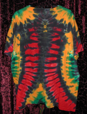 #4: WOMAD 4/20 Tie-dye T-shirt from 9/19/1993 Worn once, hand-washed. Size XL, Rastafarian colors, black, red, green, yellow tie dye. Gorgeous and unique, Beautiful color blending...fractal like....