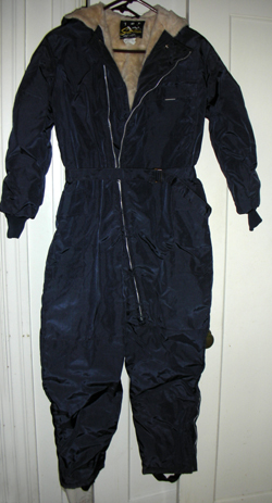 Vintage Skiwear Size 12-14 1960's Purchased at a thrift shop in the 80's, this is an old style ski jump suit. It's way cool, vintage, and unique. Wore it skiing in the 80's three times, kept me really warm and dry. Could be great for cold Burning Man nights too! Extremely well made. $10.